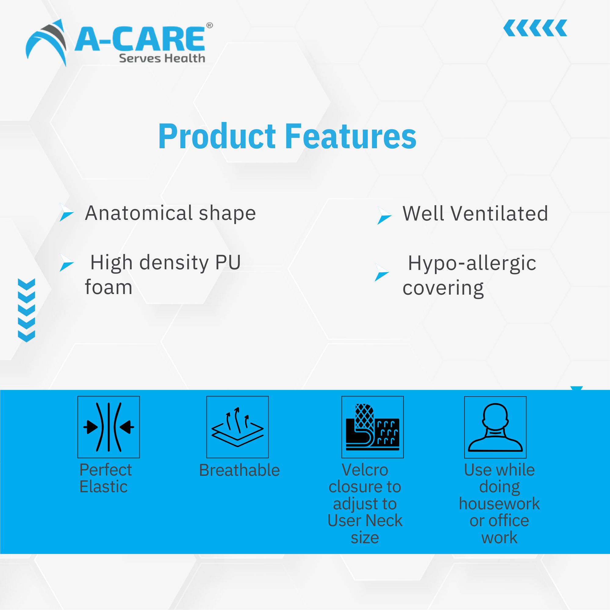 Provides comfort and support to the spine. Ideal for chronic neck pain, sports injuries, whiplash injuries. Serves as a reminder to limit painful head and neck motion